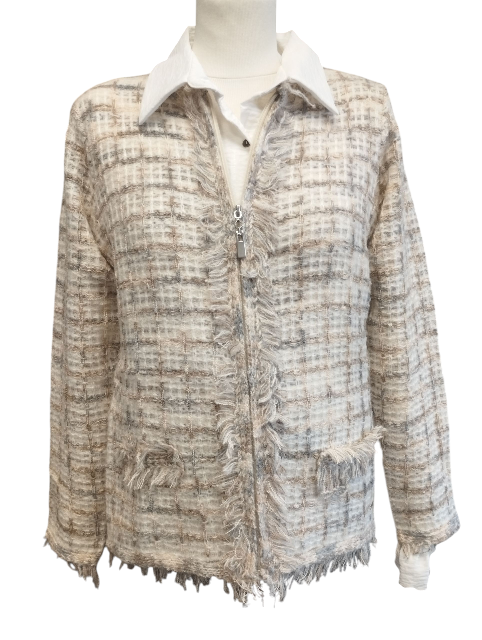 Esta preciosa chaqueta corta de corte clásico es imprescindible en tu armario. Con su cómodo cierre de cremallera, su punto con cuerpo y su calidad premium, te mantendrá cálida y estilosa. Sus tonos crudos y tostados se adaptan a cualquier ocasión y la hacen elegante y versátil.