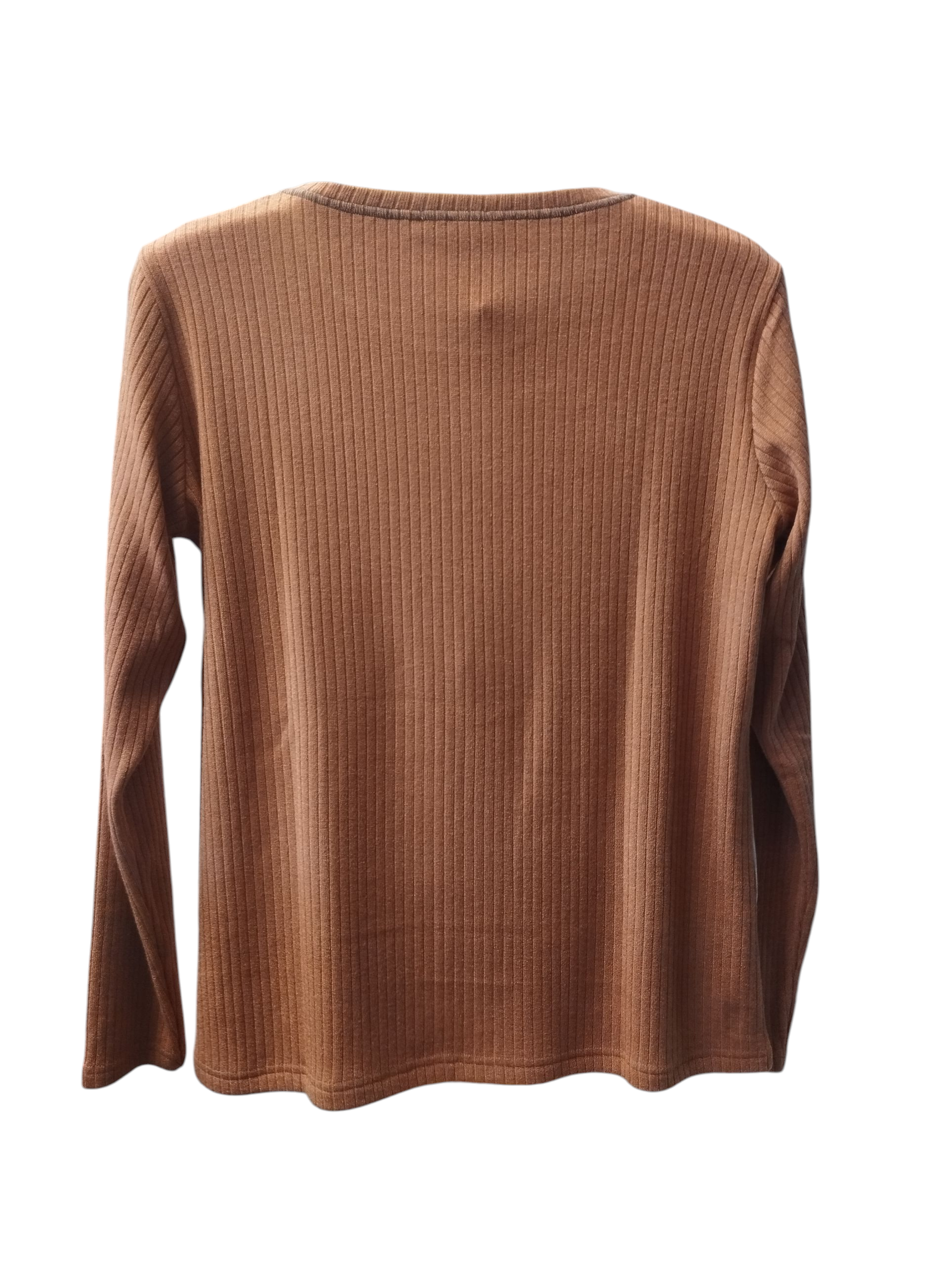 Esta camiseta de flores es perfecta para mantenerte abrigada gracias a su tejido en canalé. Además, su tono teja alegre y otoñal y el detalle de brillitos en el estampado delantero la hacen aún más bonita. Fabricada con materiales de calidad en la UE, ¡te sentirás súper amorosa con ella puesta!